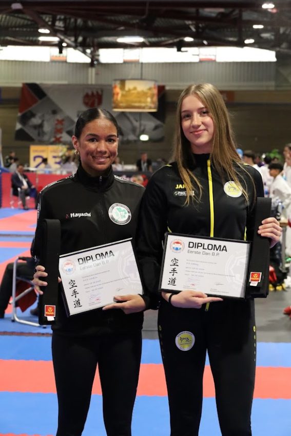 De 16-jarige Alyssia Voorduin won bij het afgelopen EK voor junioren in Tbilisi, Georgië een bronzen medaille! Daarvoor won ze ook diverse prijzen op meetmomenten, met als een van de hoogtepunten een zilveren medaille op de WKF Youth League in Porec. Voor deze mooie prestaties ontving Alyssia een bijzondere promotie tot 1e dan.