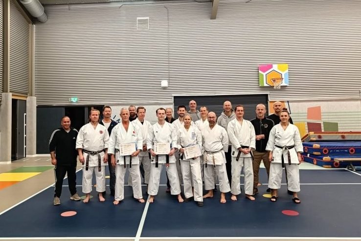 Op zondag 19 januari namen de 10 cursisten van de opleiding tot Leraar Karate-do deel aan het laatste praktijkexamen voor de opleiding Leraar Karate-do. Tijdens het examen werden ze getoetst op het lesgeven en het aansturen van een assistent. Een week eerder, op 12 januari, hadden zij allen met goed gevolg het examen organiseren en coachen afgerond. Drie cursisten hebben hun diploma tot Leraar Karate-do direct in ontvangst kunnen nemen! Eén cursist heeft een herexamen, en 6 cursisten dienen nog (stage) opdrachten af te ronden.